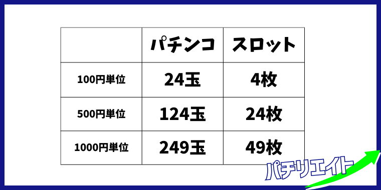 例えばパチンコは1玉4円、スロットは1枚20円ですが、換金するときは500円単位の店がほとんどですよね。